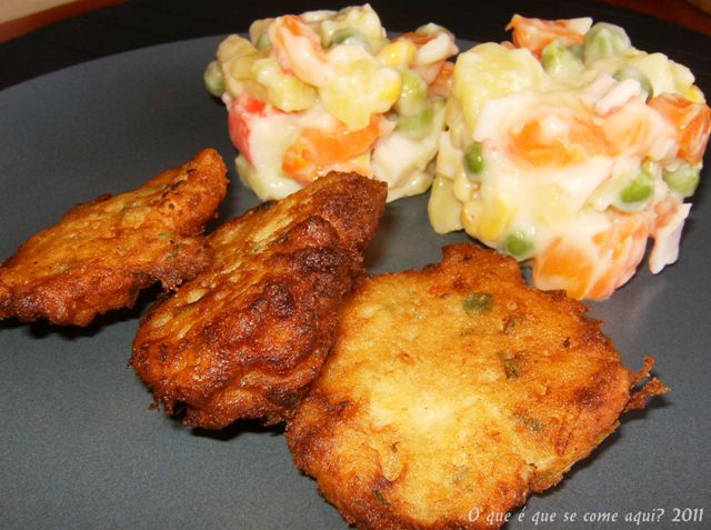 Levar uma frigideira ao lume com o óleo. Quando estiver quente fritar a massa em pequenas porções. Escorrer em papel absorvente, para retirar o excesso de óleo. Servir com arroz ou salada russa.