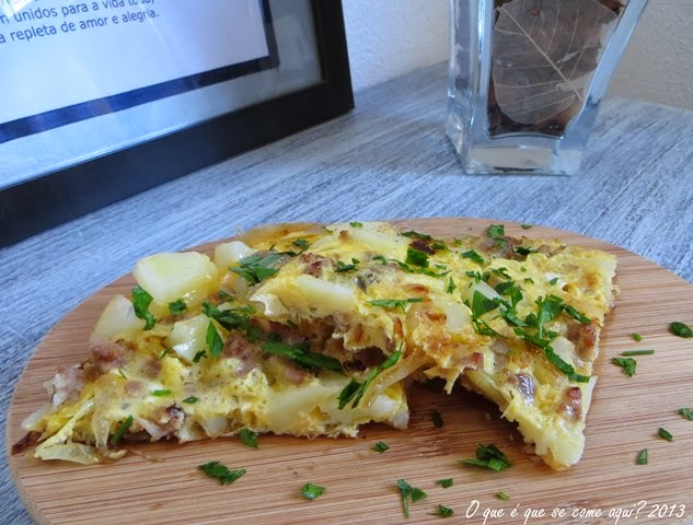Mas como há sempre sobras no frigorífico, lá saiu esta tortilha.......